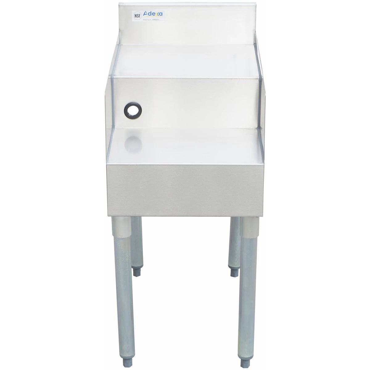 Commercial double step blender station. This professional back bar blender station is the ideal addition to your bar, allowing you the space to effortlessly operate your blender. With an 80mm backsplash and galvanized stainless steel construction, the blender station is sturdy and reliable.Â