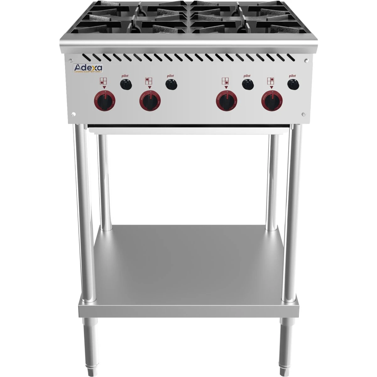 The Adexa freestanding gas boiling top is the perfect addition to any professional catering establishment. Featuring 4 x35000BTU/hr stainless steel burners with independent pilots, the boiling top also includes a full size waste catching tray. The default configuration is natural gas with gas connection pipe and 3/4″ NPT thread included, but the stove can be converted to an LPG gas supply to suit your requirements.