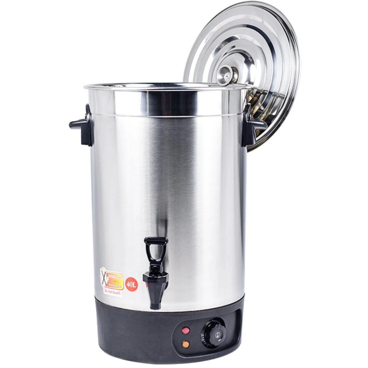 A commercial hot water urn designed for catering customers that need a lot of hot water quickly, whether you are using it for social gatherings, business meetings, club, group function or waiting areas, this urn will definitely meet your expectations. With the quick heating time of around 45minutes at full capacity, as well as the heating and keeping warm indicator lights, you can keep you establishment moving even during your busiest serving periods. It’s ABS heat resistant handle and anti drip water tap also ensures the safety of staff and customers.Â