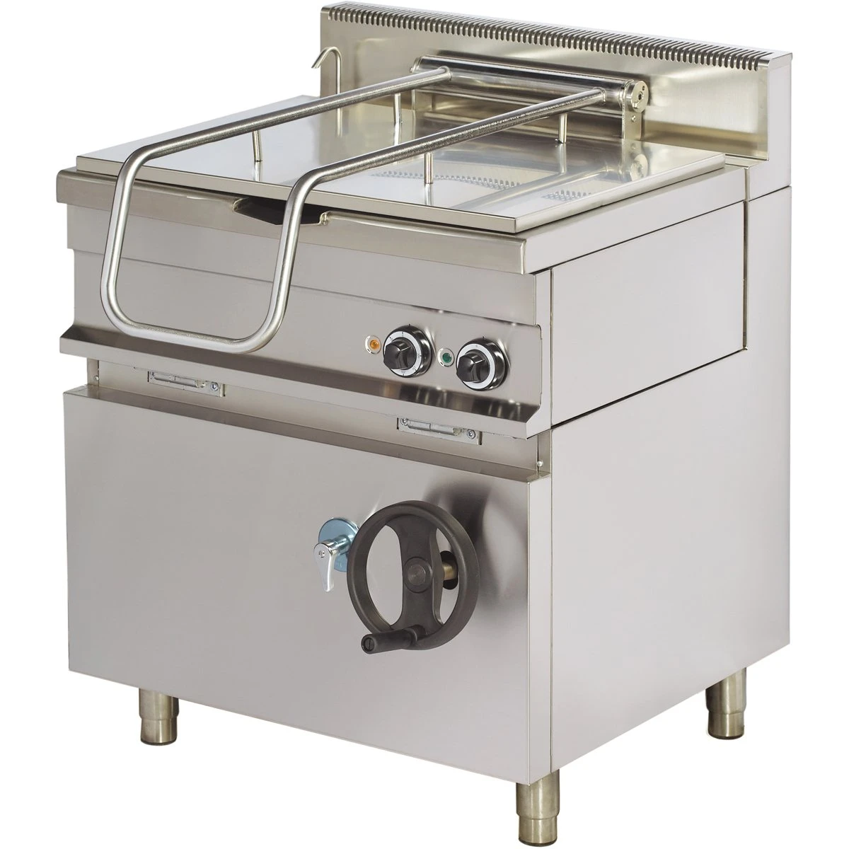 This professional tilting bratt pan is a heavy duty commercial cooking appliance which is able to perform up to eight cooking functions: braising, boiling, steaming, poaching, stewing, roasting and frying.