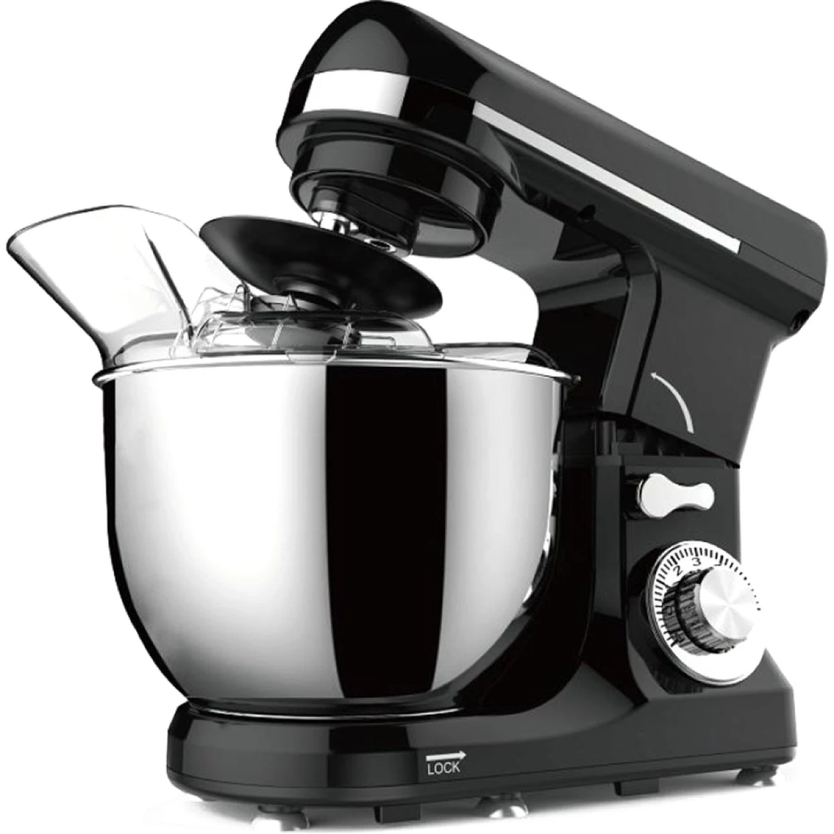 - Equipped with three accessories including wire whipper, dough hook, flat beater with transparent splash bowl cover offering mixing versatility to blend, beat, whip,knead, mix eggs or cream.