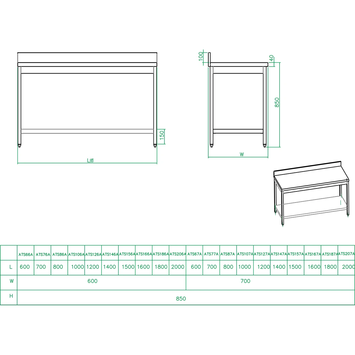This is an amazing value for money commercial work table. Heavy duty, premium quality, 201 AISI stainless steel table to meet the high quality standards of the food service and catering industry.Â
