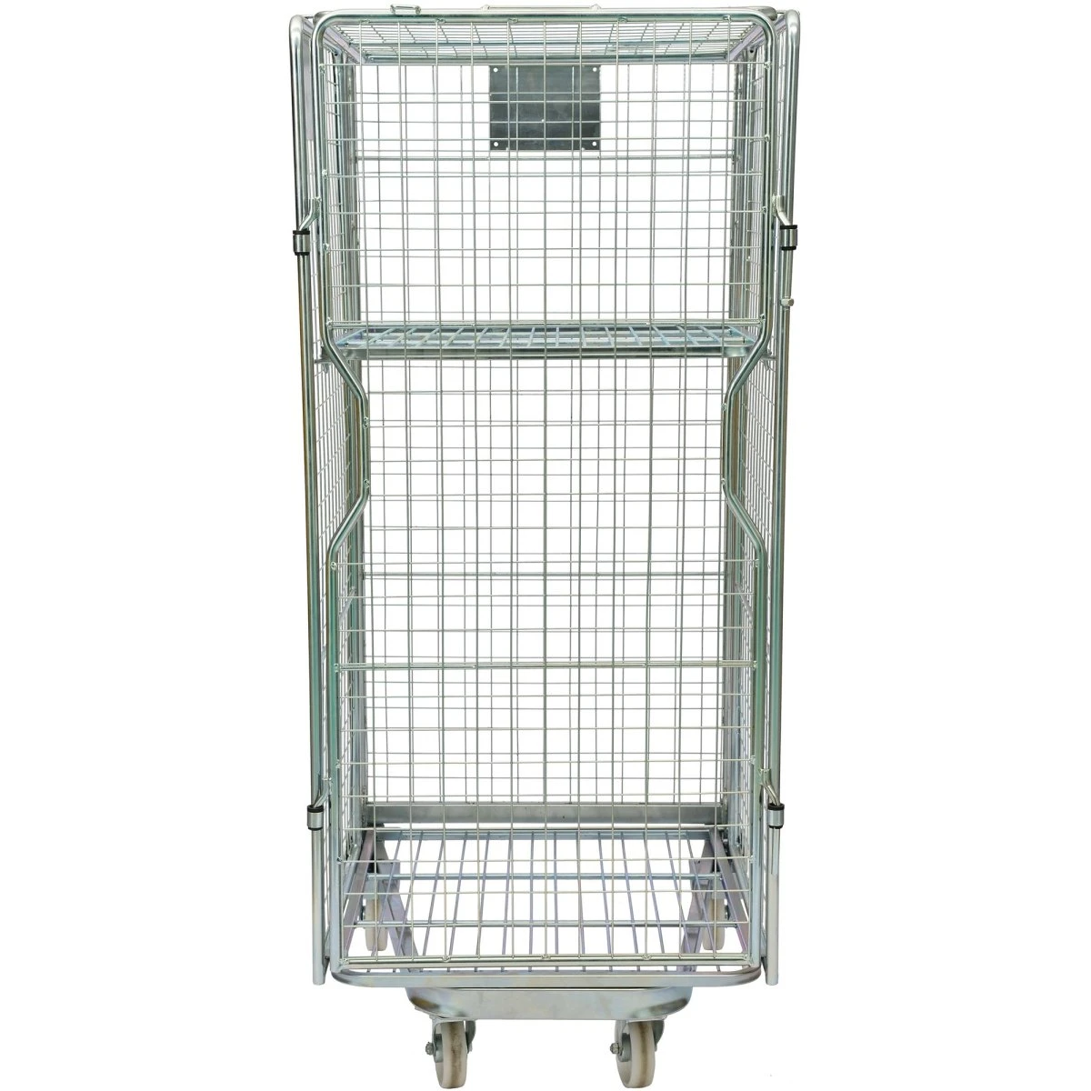 Designed to securely fully enclosed contents when in use but minimise storage space when nested. This full security general-purpose roll container is supplied with nylon castors, 50x50mm mesh in fill on all six sides, a folding internal shelf and an A frame base to allow the roll cage to nest with others when not in use. To nest the containers, you simply fold up the base, and then fold each side in towards the back frame. Once the sides are secured in place the container is then ready to be nested with another A frame of the same size.