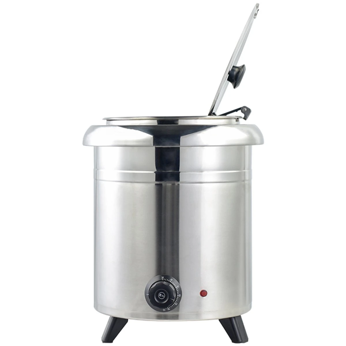 Commercial soup kettle with a 10 litre holding capacity, this Soup Kettle is ideal for preparing and serving piping-hot soups to your customers. This professional soup heater will keep soup at the ideal serving temperature. Perfect for cafeterias, diners, and self serve kiosks. Includes stainless steel insert.