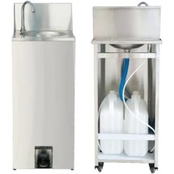 Foot Operated Mobile Wash Basin With Backsplash & Castors Stainless Steel | Adexa WHF277