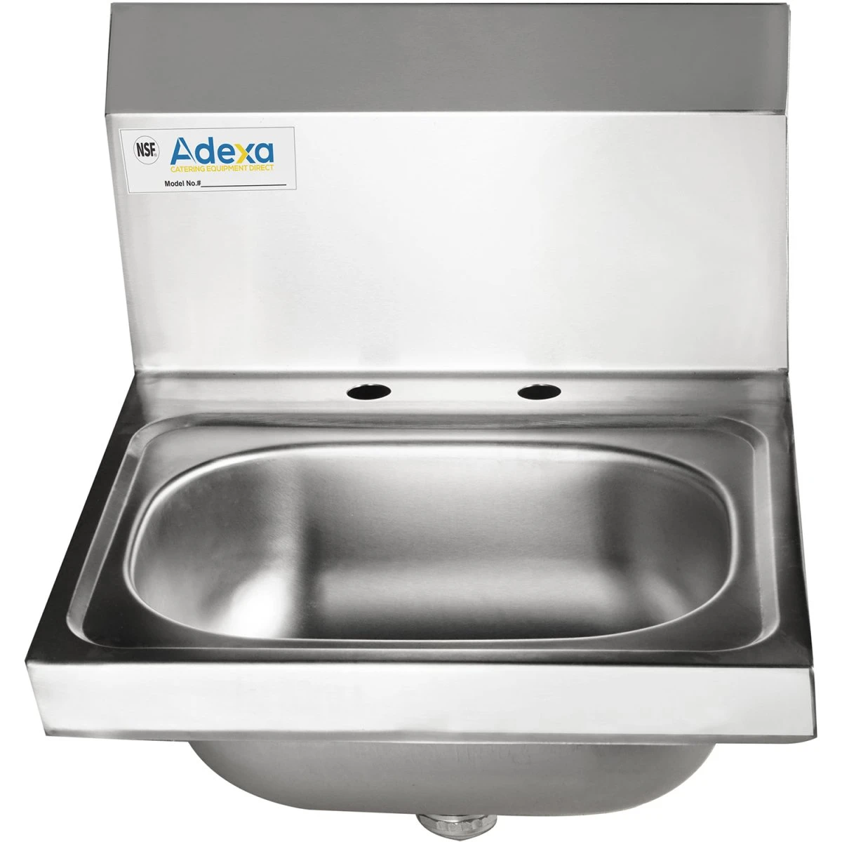 Keep your restaurant up to code without sacrificing space with this hand sink with a single bowl and a convenient high back splash. This easy-to-clean, compact sink easily fits in tight spaces and securely attaches to the wall or a surface to open up floor space for other uses. Its attractive, yet simple design will be sure to encourage cleanliness in the kitchen.